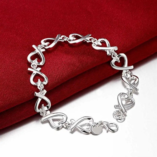 925 Sterling Silver Hearts & Roses Chain Bracelet
