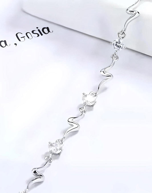 925 Sterling Silver Swirl Chain Bracelet with Clear Stones