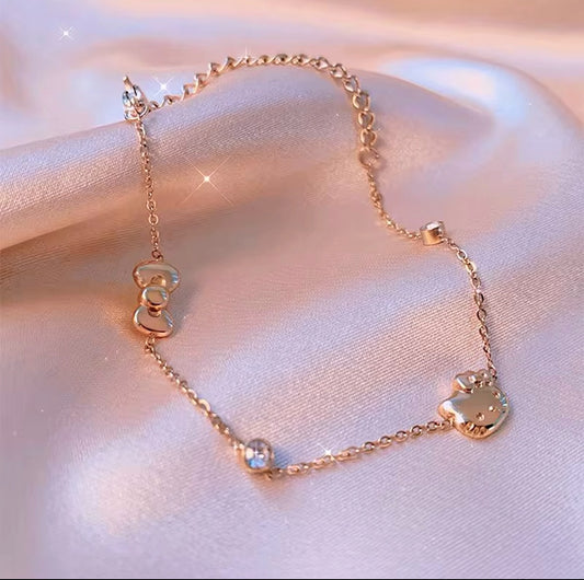 Hello Kitty 925 Sterling Silver Rose Gold Plated Bracelet